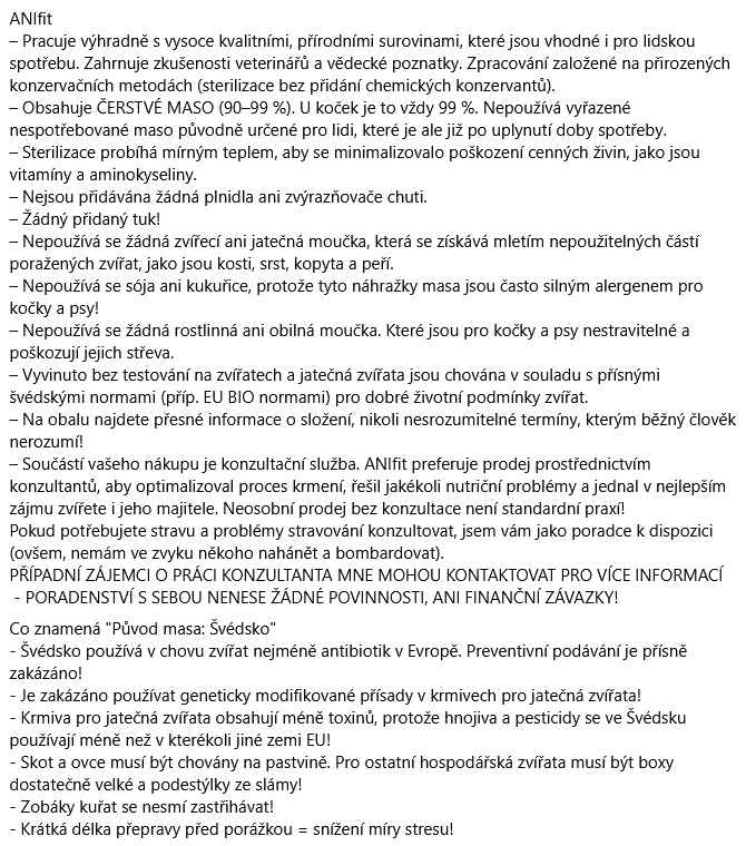 - ANIfit – jatečná zvířata chovaná ve Švédsku dle přísných švédských norem, nebo EU BIO kvalita