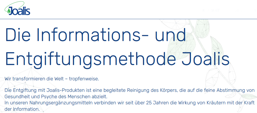 Laut den Machern handelt es sich bei der Joalis-Informationsmedizin um einen Ansatz des dritten Jahrtausends, auch wenn es sich noch nicht um ein offiziell anerkanntes Therapieverfahren handelt.